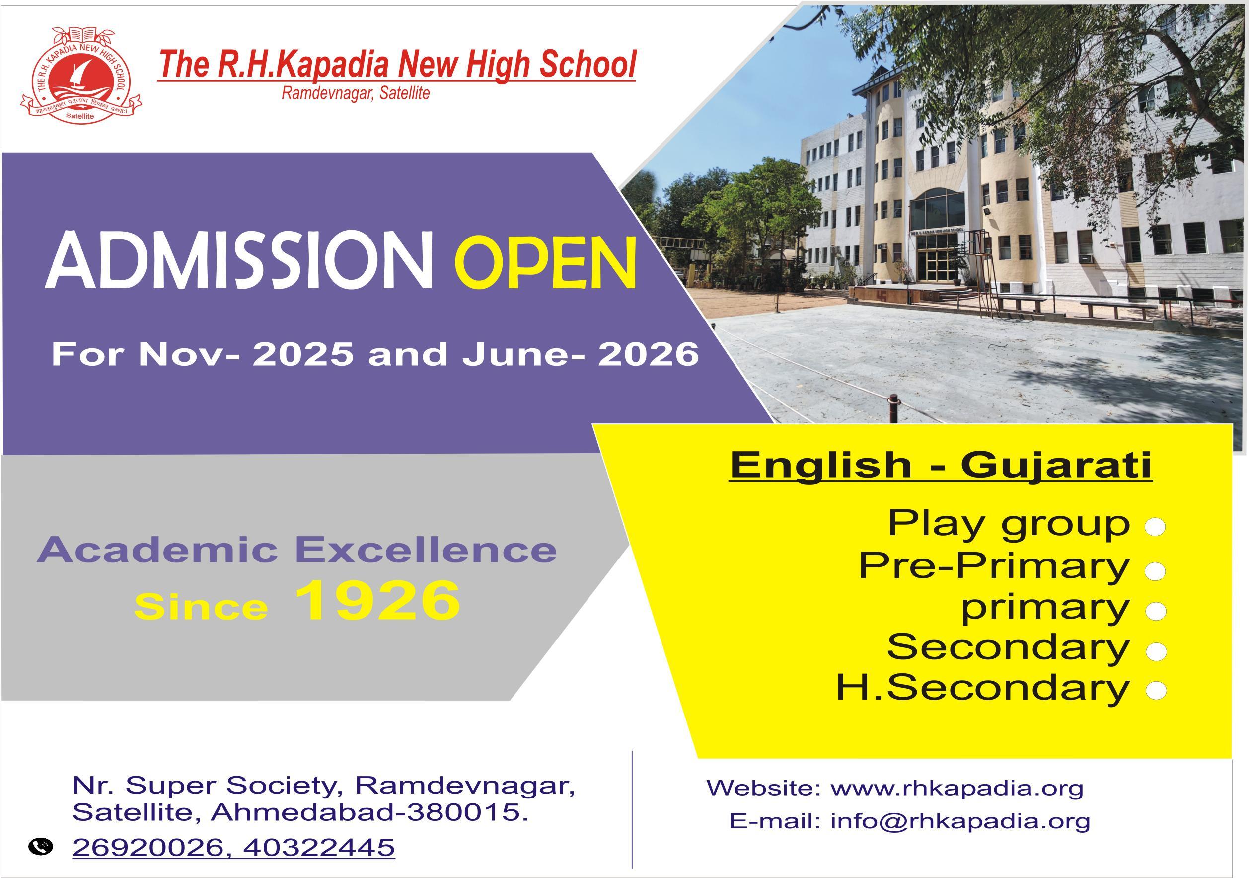The school motto as expressed in Sanskrit reflects that ‘life and learning are one’, and the Latin translation is ‘life is for learning’ or ‘learning is for life’ The three expressions are open to very rich interpretation, and the choice of two ancient languages of scholarship is a representation of the fusion of cultural excellence found at The R.H. Kapadia New High School.